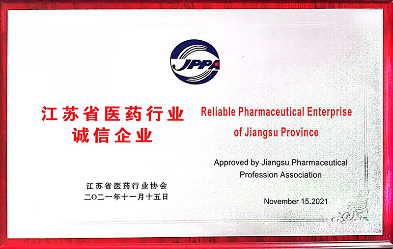 江蘇省醫(yī)藥行業(yè)誠信企業(yè)